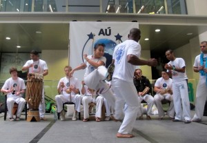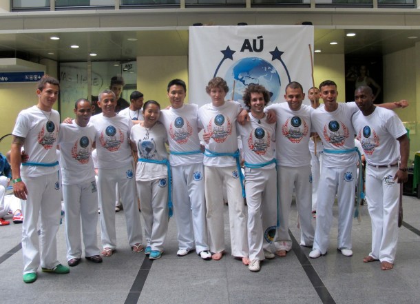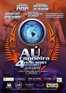 This past week the AÚ Capoeira New Zealand school hosted their 4th Summit here in Auckland. Programs such as trainings, workshops, sharing sessions and movie screenings are held as part of the summit, which culminates in the Batizado ceremony – typically an annual event in which new members of a capoeira school is ‘baptized’ (the literal meaning of the Portuguese word ‘batizado’) officially into the group they train with. The capoeiristas (capoeira players) are given their first corda (literally ‘cord’, the belt that capoeiristas wear), and some receive new corda replacing their previous one to signify their progress in the experience levels of capoeira. These levels are differentiated by the colours of the corda, which may differ between schools. Grading system for the school I attend can be found here.
