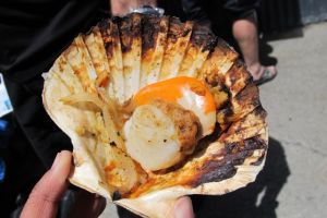 Kina, a type of sea urchin that’s endemic to New Zealand. It is considered a delicacy by the Maori. The shell is cracked open, and you eat the roe inside, raw. I was given a taste of it and I’m not quite sure if I’d go for seconds!