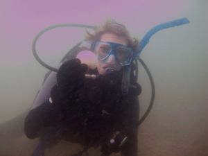 Karen holding up a scallop she’d found, but we didn’t collect any on this dive