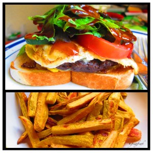 Fizzy's Burger, with my favourite homemade oven-baked sweet potato chips on the side 🙂